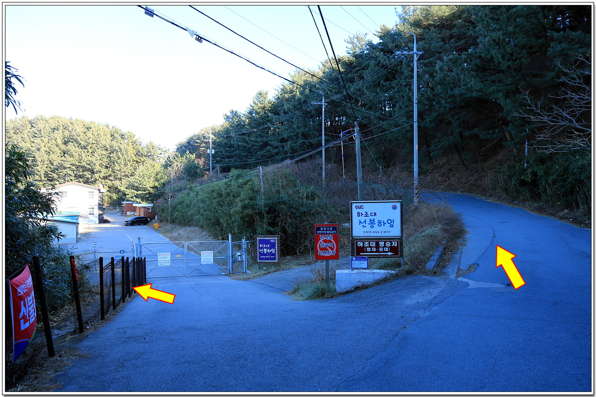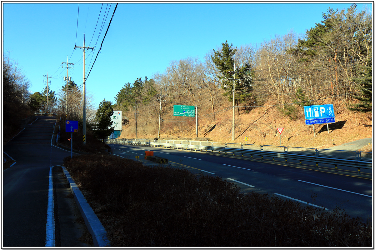 한국가스공사의 방산탑(放散塔)이 있는 지점에서 오른쪽으로 꺾어...