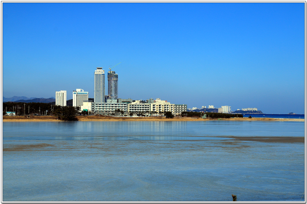 꽁꽁 얼어붙은 양양 남대천 하류는 호수를 이루고 있다