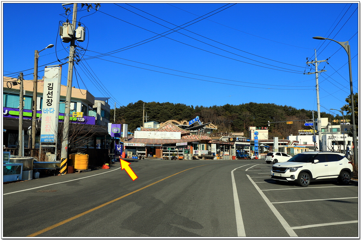 김선장횟집 옆으로 가서 수산항을 벗어난다