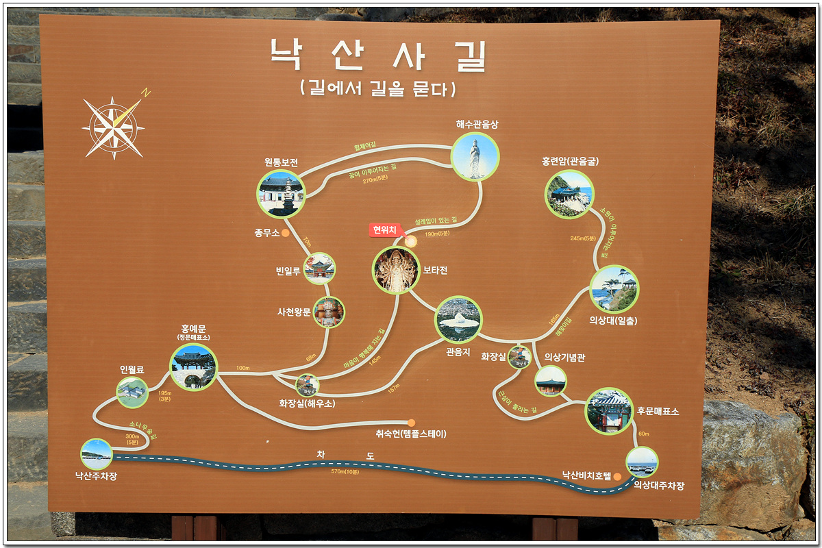 낙산사의 이곳저곳을 꼼꼼히 둘러보느라고 낙산사에서만 1시간 17분을 머물렀다