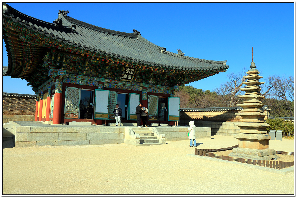 원통보전과 칠층석탑이 나온다