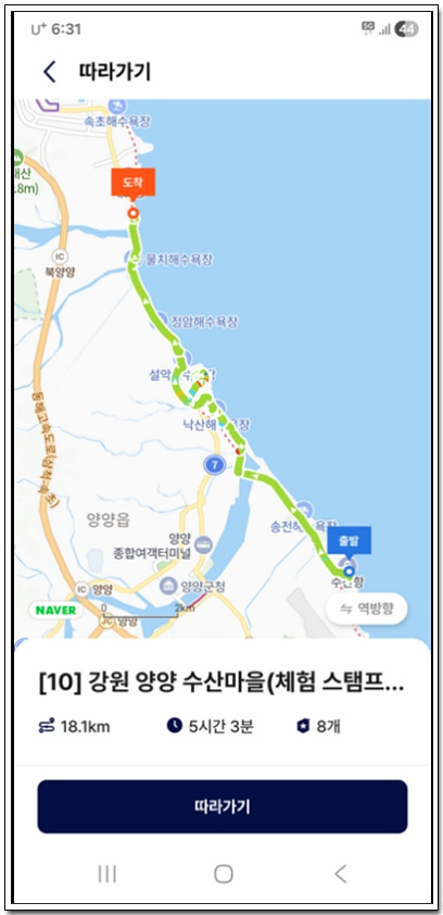 구간 지도에는 44코스가 12.5km 거리에 4시간 30분이 소요된다고 되어 있지만