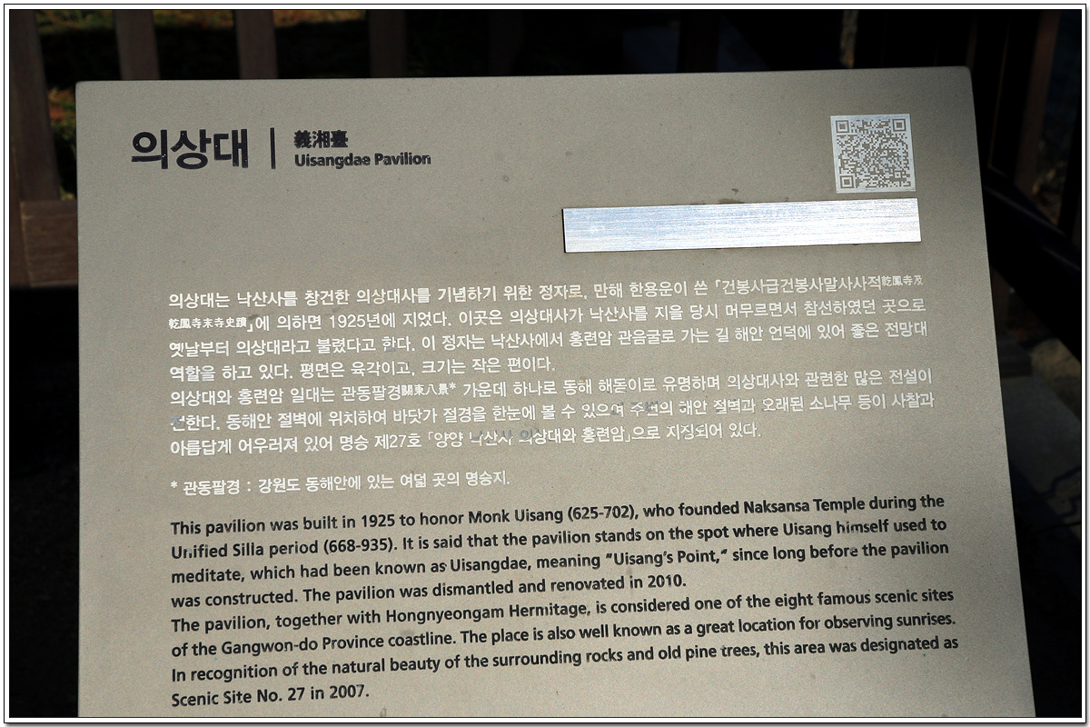 고성, 양양, 속초의 설악일원에서 일출풍경 1위는 이곳 낙산사의 의상대이며