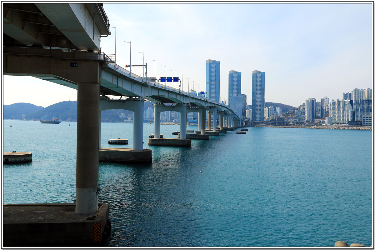 남항대교 아래로 저기 송도 끄트머리의 동섬과 연결된 용궁구름다리가 보인다