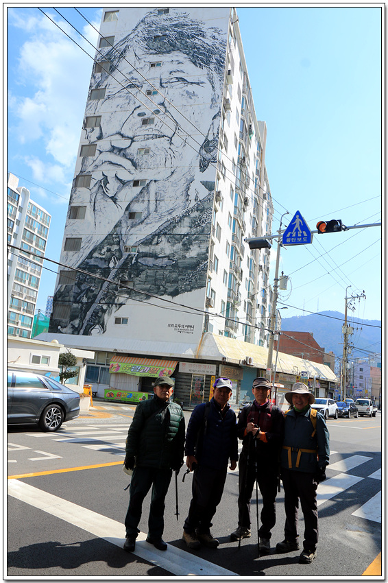 마을 아파트 벽면을 장식한 깡깡이 할머니 그림