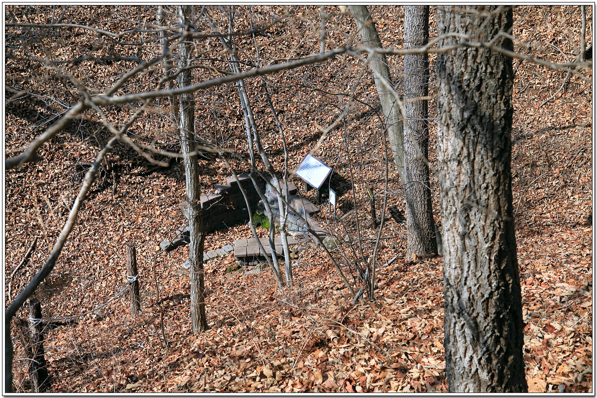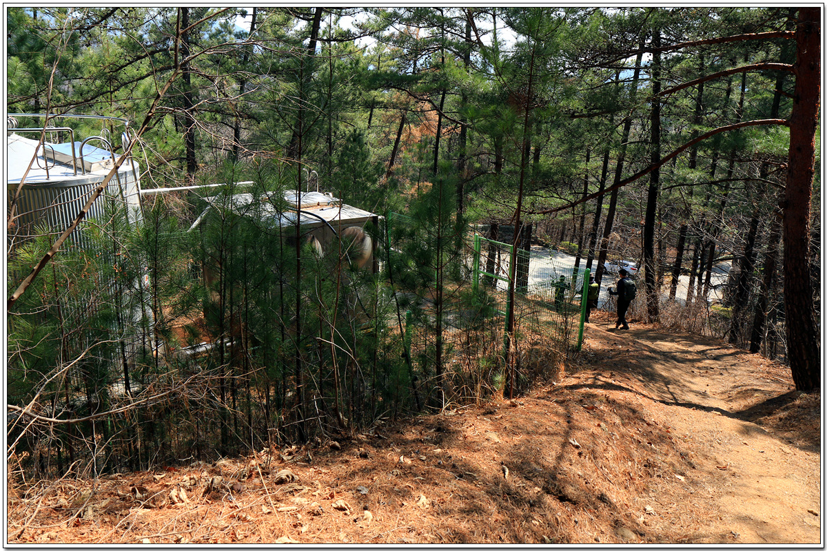 오른쪽 아래 자드락길 약150m 거리의 골짜기에 보이는 저 샘이 '눈밝이샘'인 것 같지만 그냥 패스한다