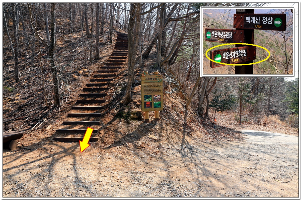 이정표를 보니 운암사에서 바로 올라오는 산길도 있다