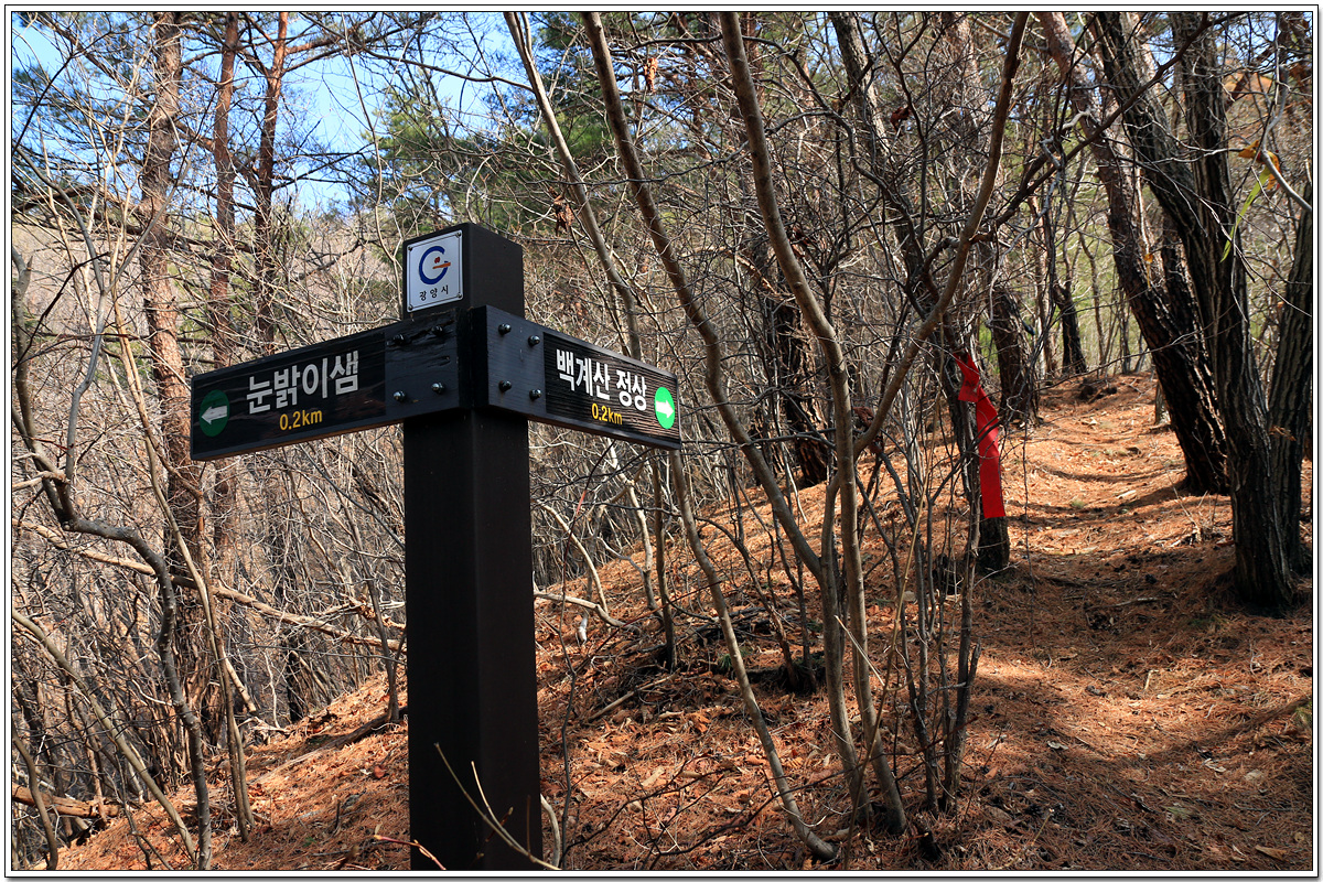 국제신문 안내에는 눈밝이샘을 갔다가 되돌아와서 직진길로 진행을 하도록 되어 있지만