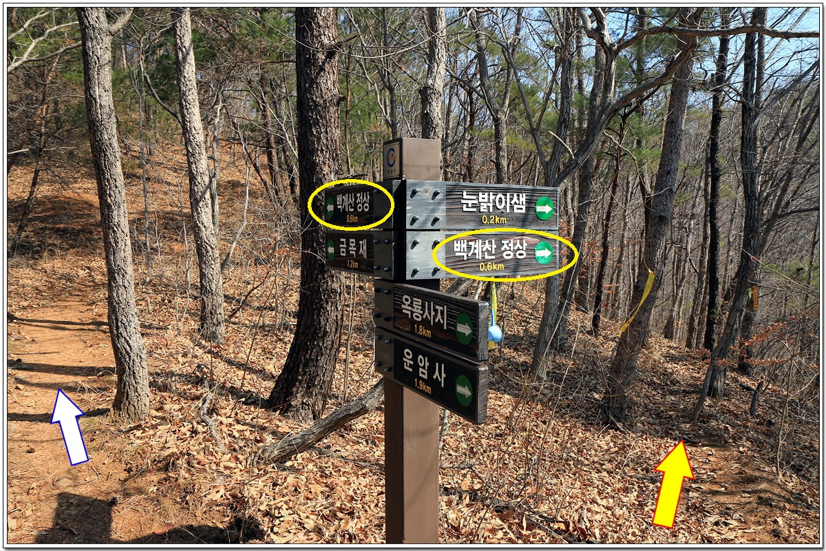 왼쪽 직진으로도 백계산 0.6km이고, 오른쪽으로도 백계산 0.6km다