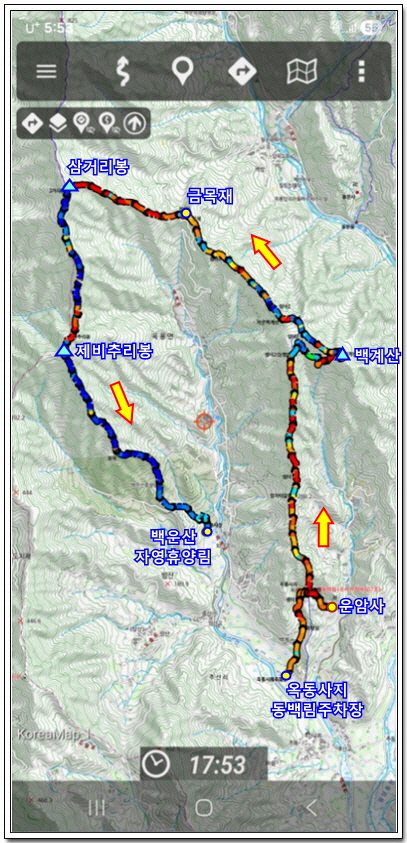 13:33 백운산자연휴양림 주차장 / 총산행시간 : 4시간