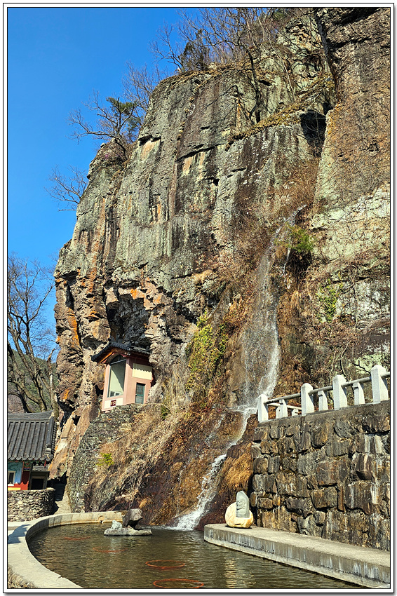 암벽에서는 비록 인공폭포지만 시원한 폭포수도 흘러 내리고
