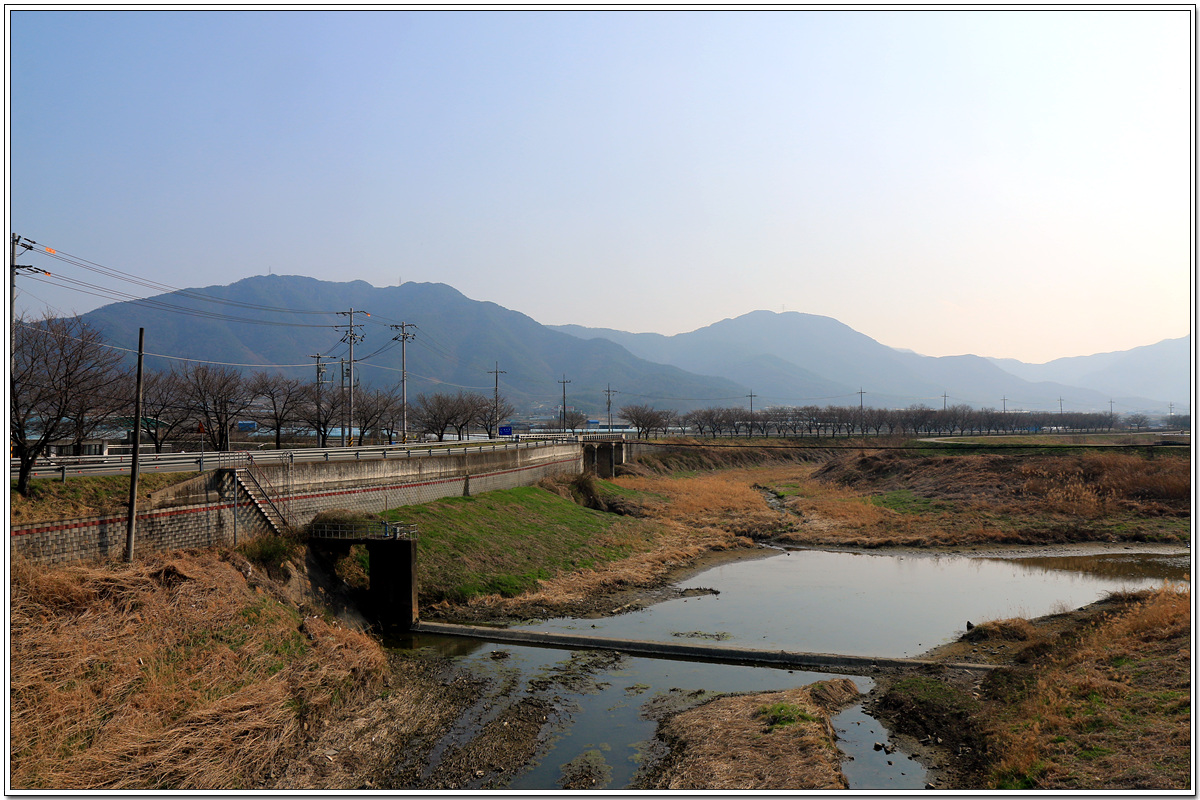 적중교 아래 산내천과 오른쪽 적중 농공단지 쪽 광경