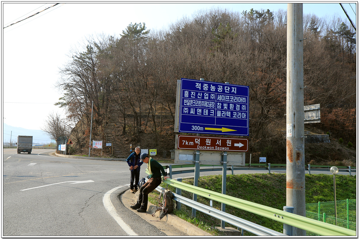 15:57 적중교를 건너 적중삼거리 도로변에서 산악회 버스를 기다린다