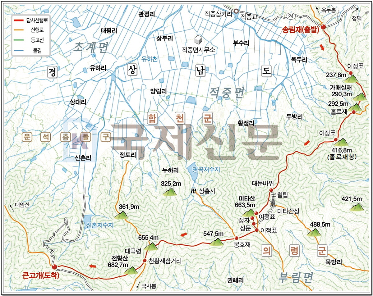 함지박 모양으로 초계·적중면을 감싼 형국이다
