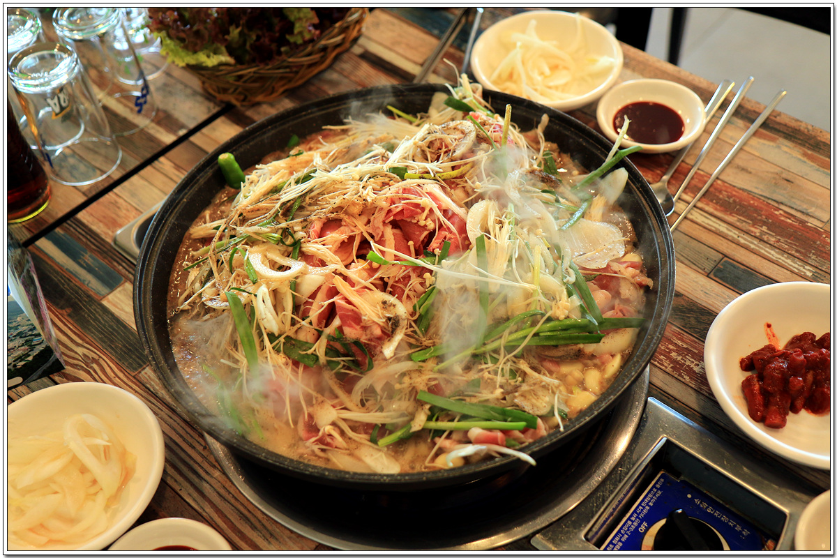 산더미 야채 오리탕에...