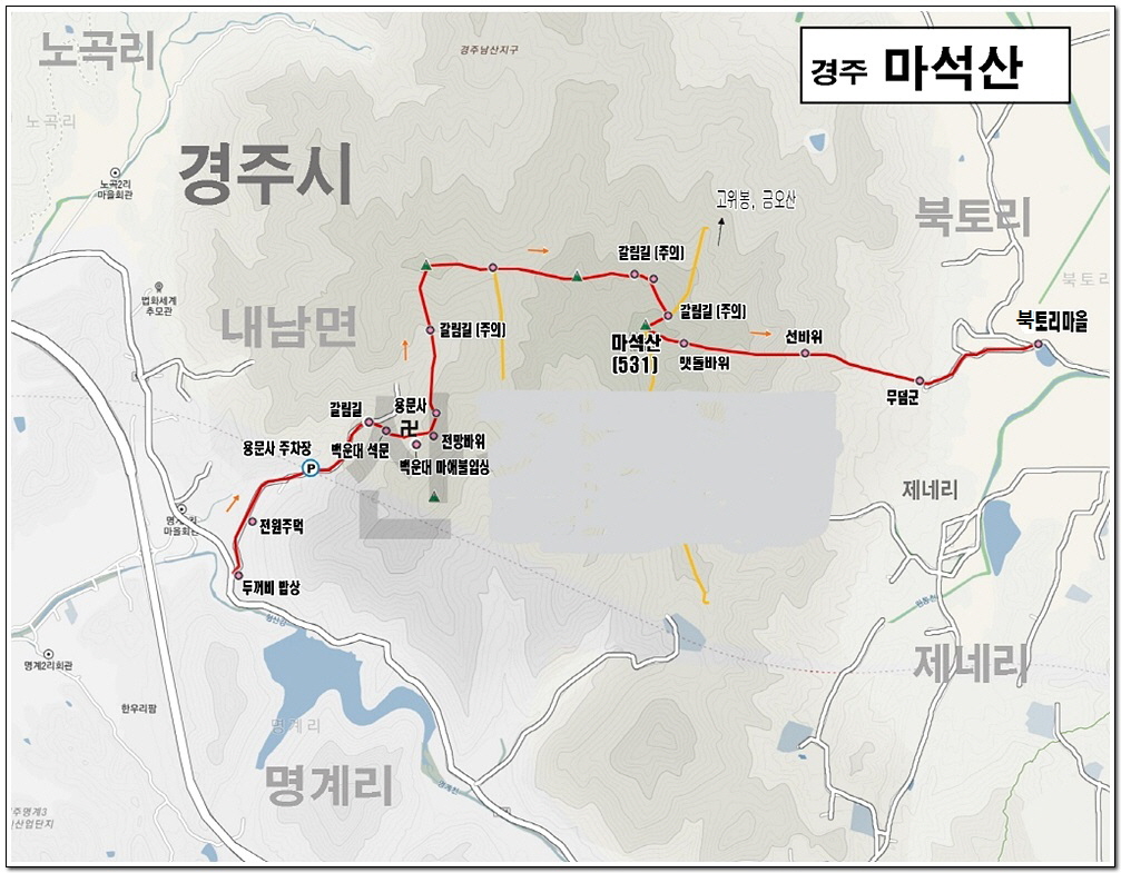 12:37 경주 외동읍 북토리 마을 주차장으로 하산