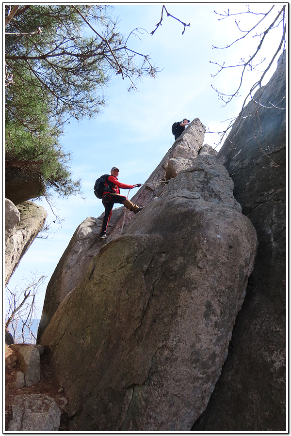 맷돌바위에는 밧줄을 타고 오를 수 있다