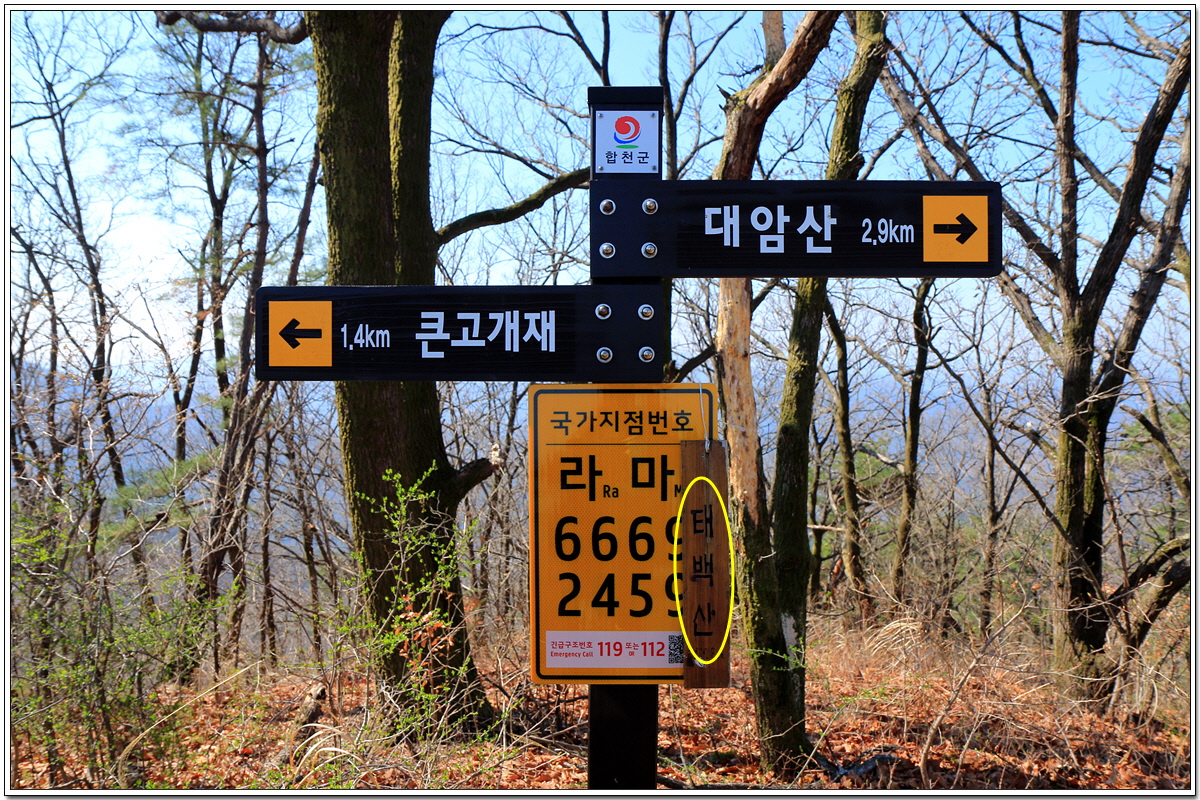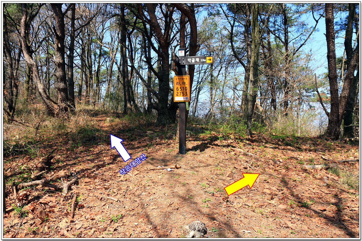 노란색 이정표에 작은 대암산이라고 적혀 있다