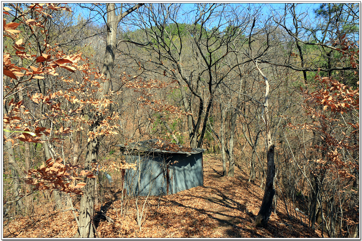 밤나무 밭 함석 움막을 지나자마자 나오는 갈림길에서 왼쪽 능선으로 올라 붙어