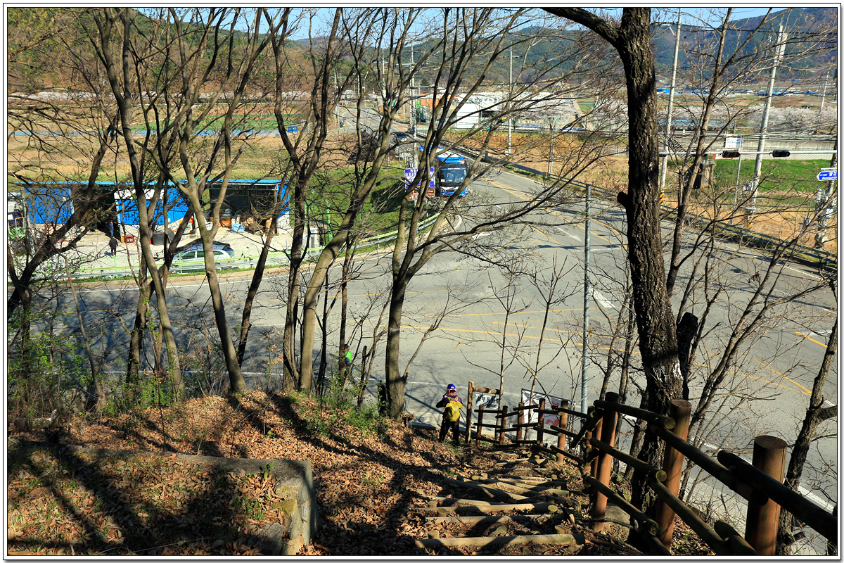 저 아래 산악회 버스가 대기하고 있는 날머리 적중삼거리가 보이고