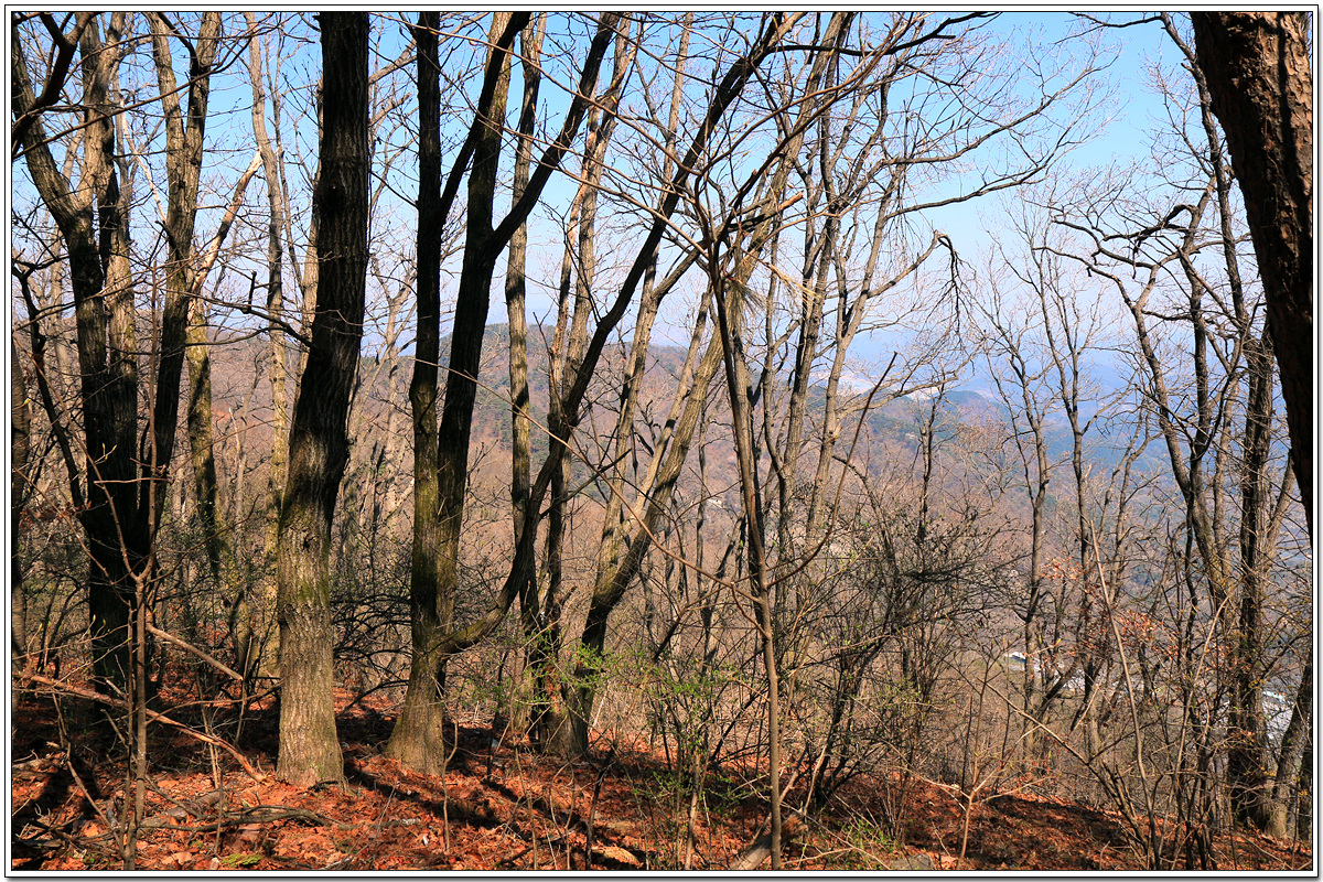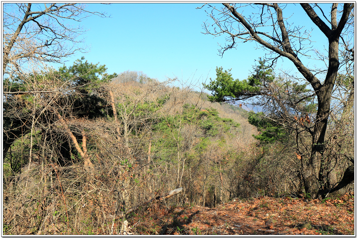 이제 나뭇가지 사이로 단봉산 정상부위가 보이고