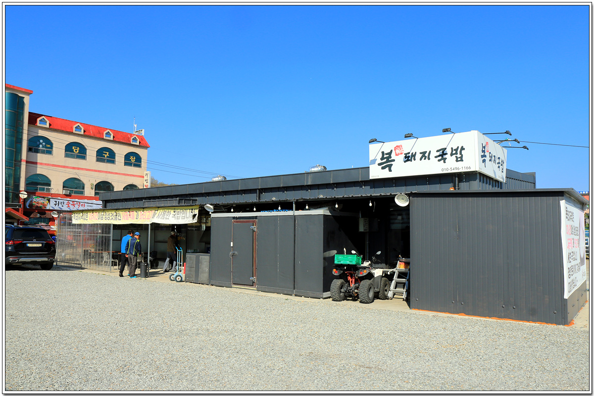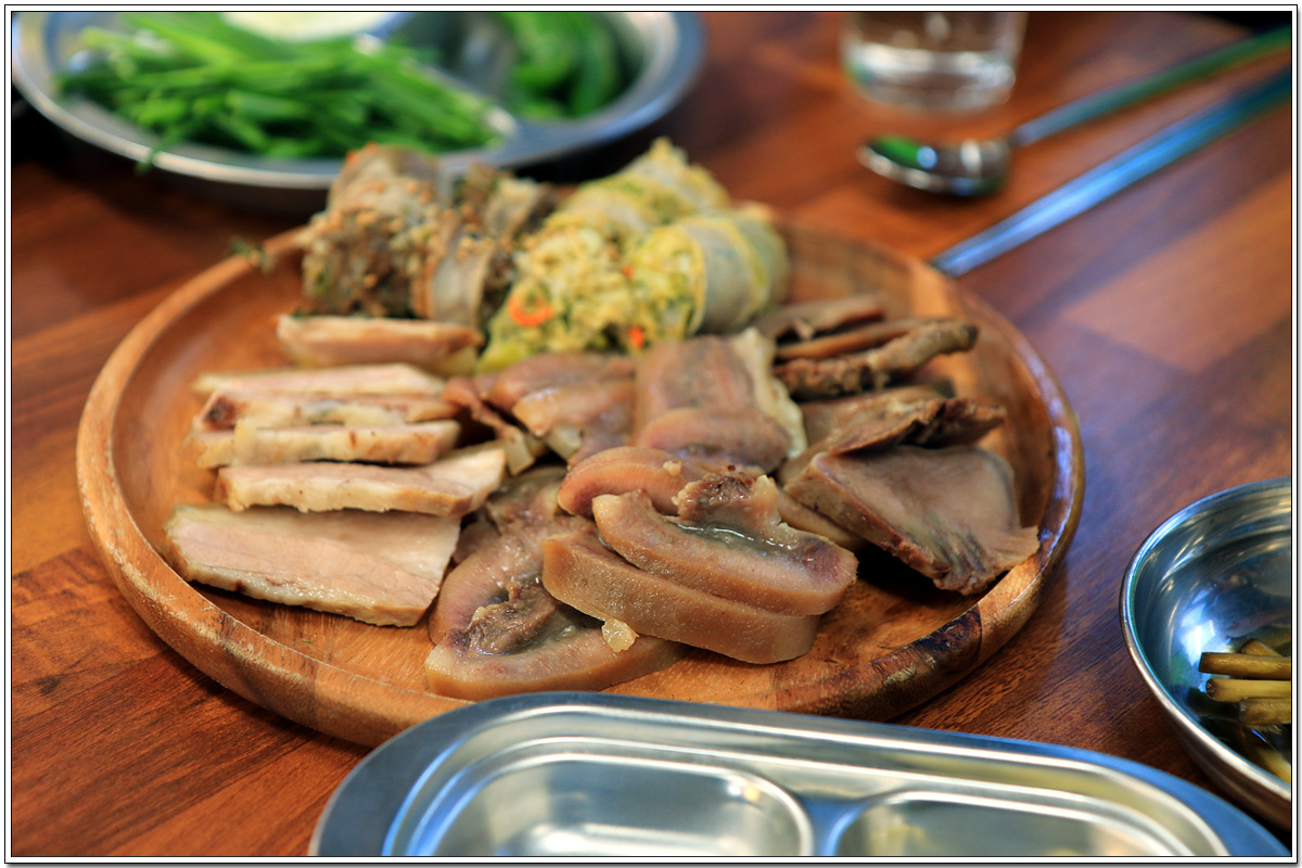돼지 수육에 돼지국밥으로 이른 저녁을 먹으면서 하산주도 겯들인다