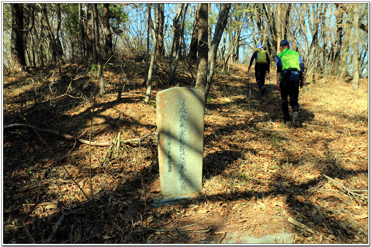 좌우에 문/무인석이 서 있는 오래된 묵묘를 지나는데, 빛바랜 비석에는 가선대부(嘉善大夫)가 보인다