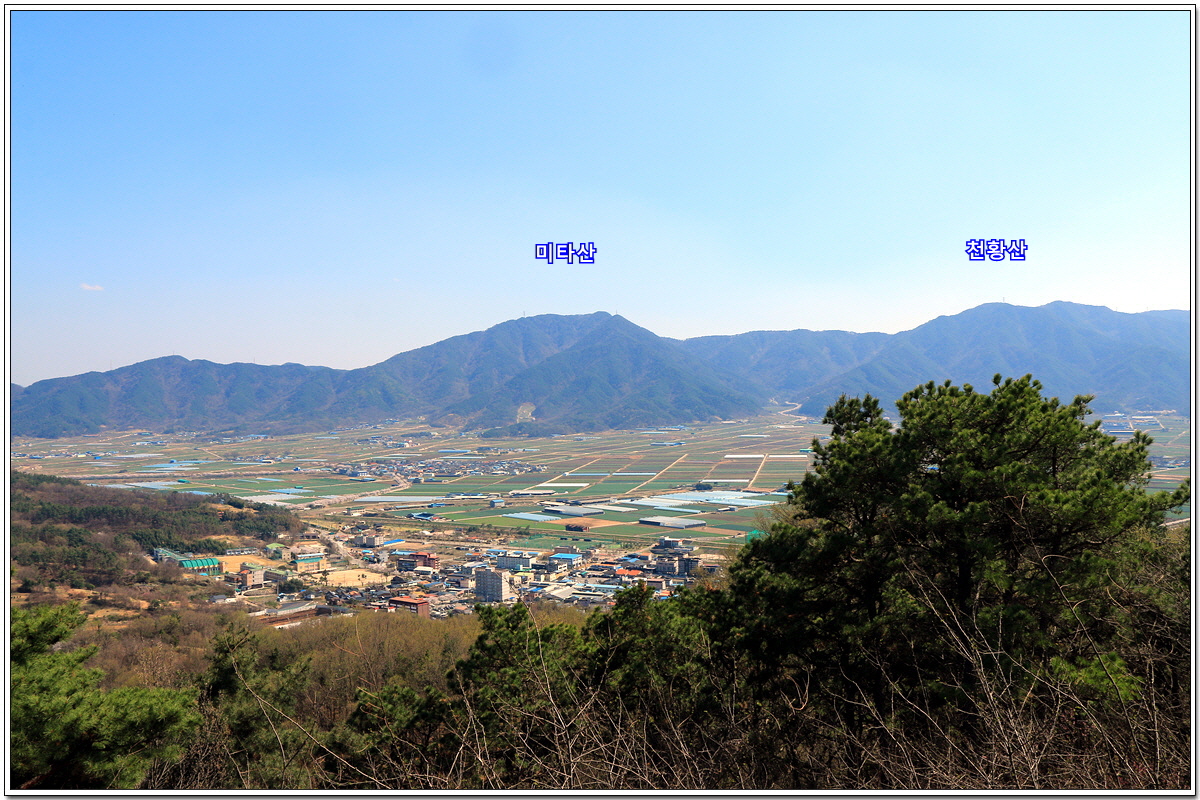 남쪽 발아래 초계면과 적중면 소재지가 보이고