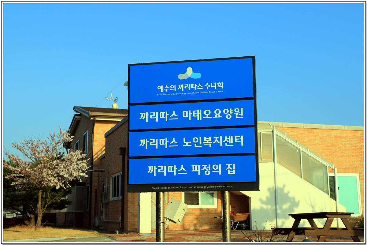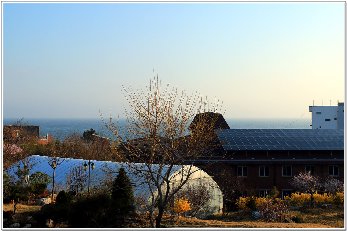 까리따스 수녀회 건물 너머로 푸른 동해바다가 보이고