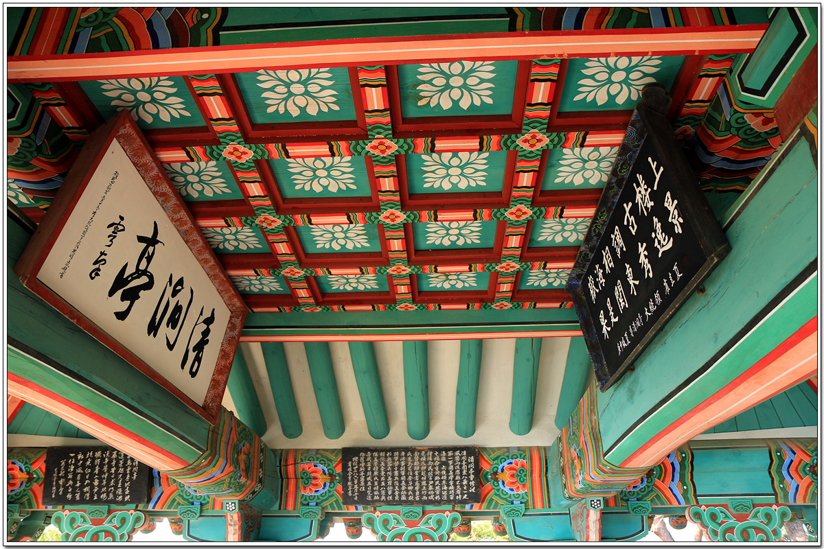 두 대통령의 현판들은 정자 중앙에 서로 마주보며 걸려 있다