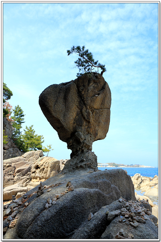 가느다란 아랫 부분으로 인해 가분수 형태를 한 커다란 바위인데
