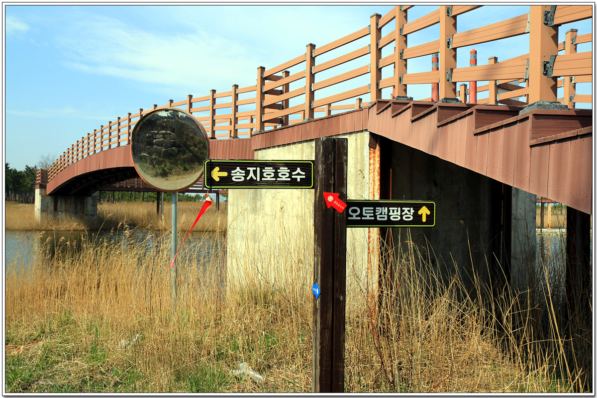 데크다리가 나오는 지점에서 데크다리를 건너지 않고 왼쪽 송지호로 진행한다