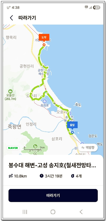 후반전 47코스의 포인터는 송지호와 왕곡마을이다